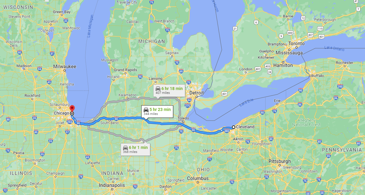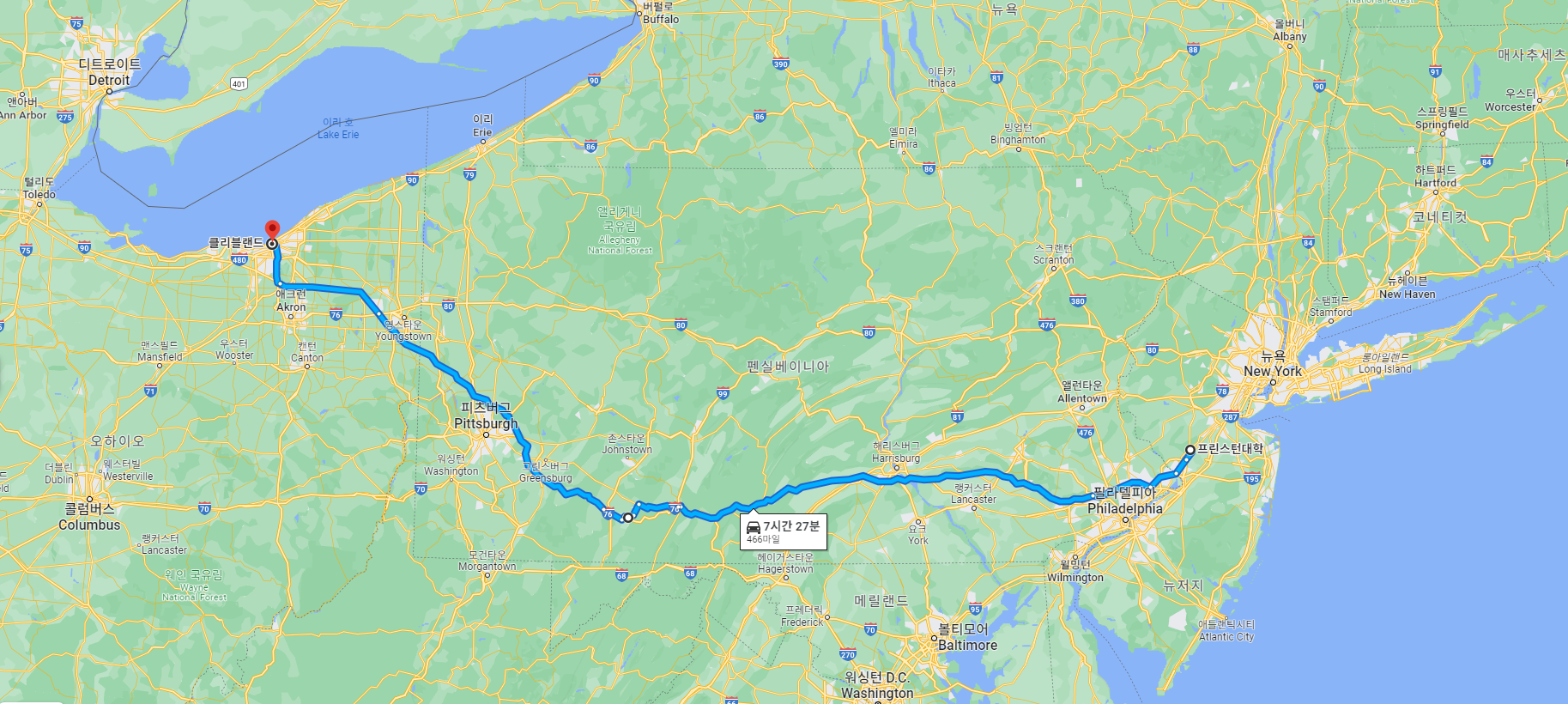 를 지나 오하이오(Ohio)주 까지 가야하는 일정입니다.