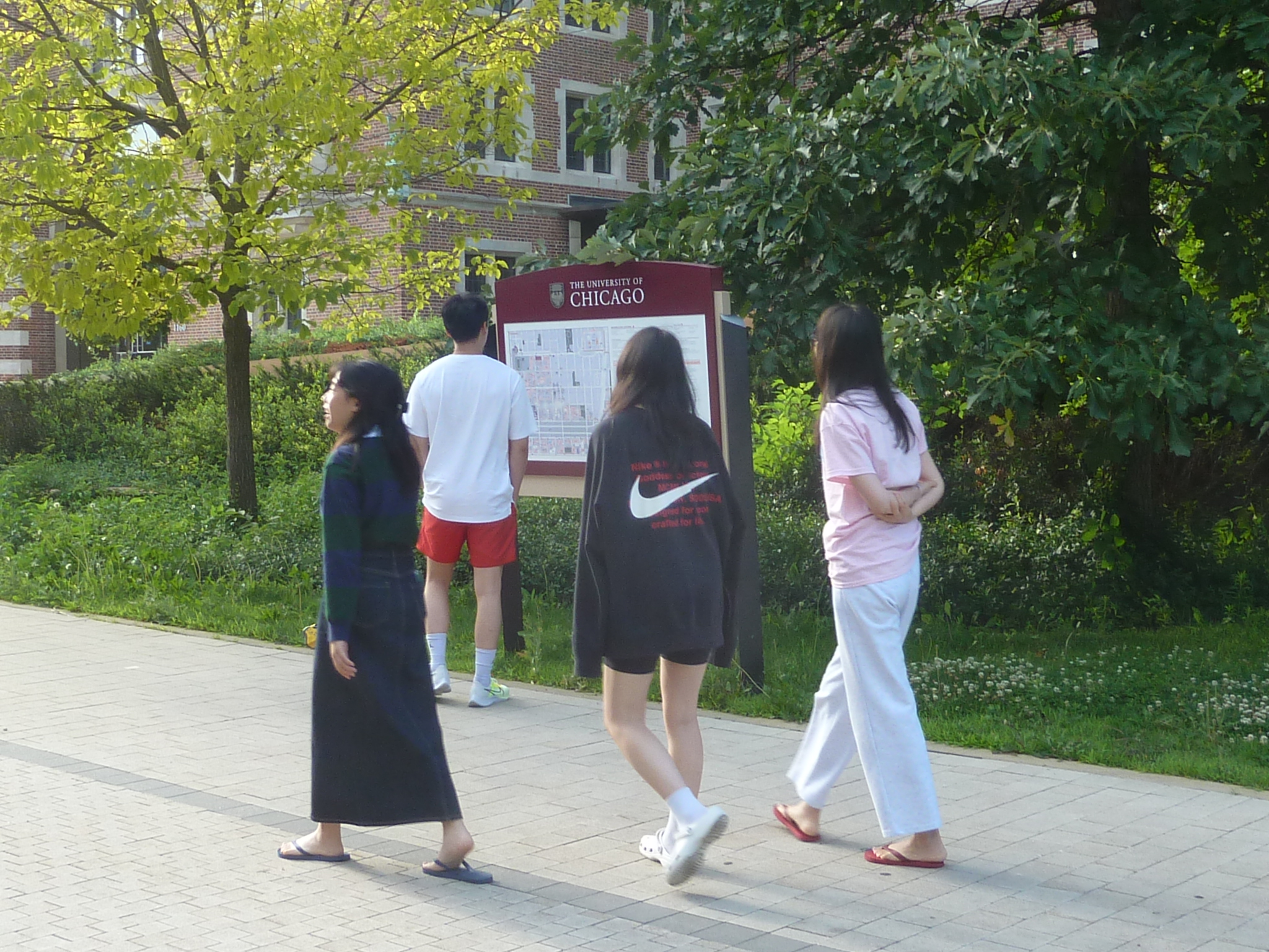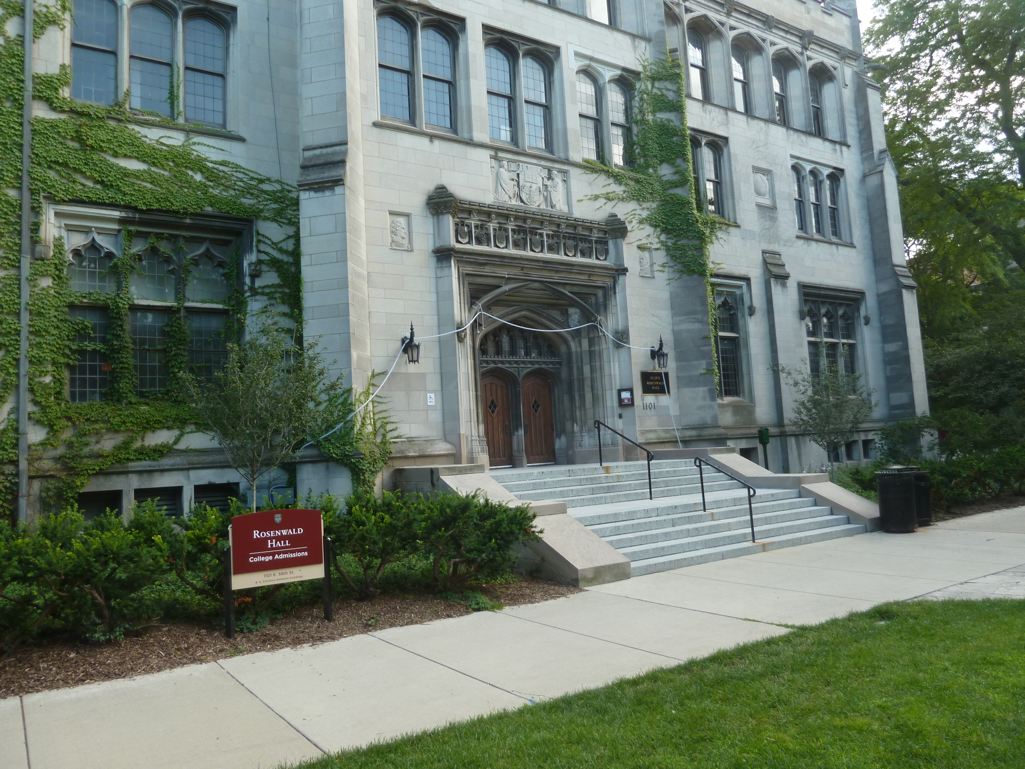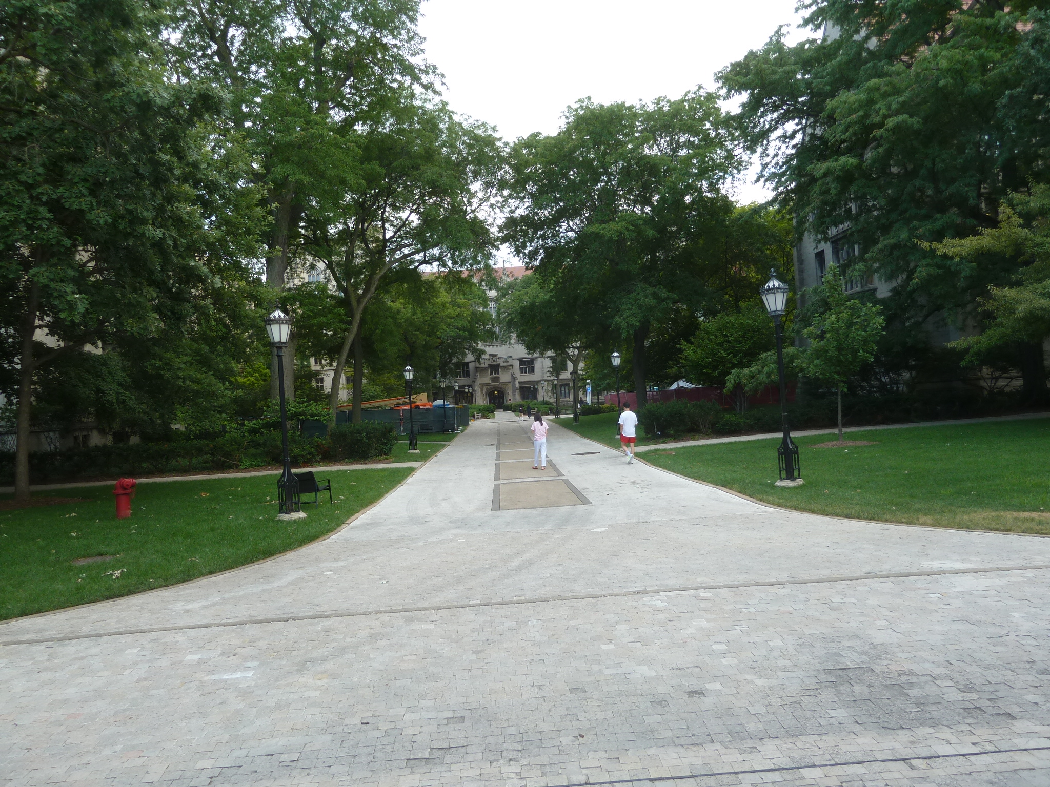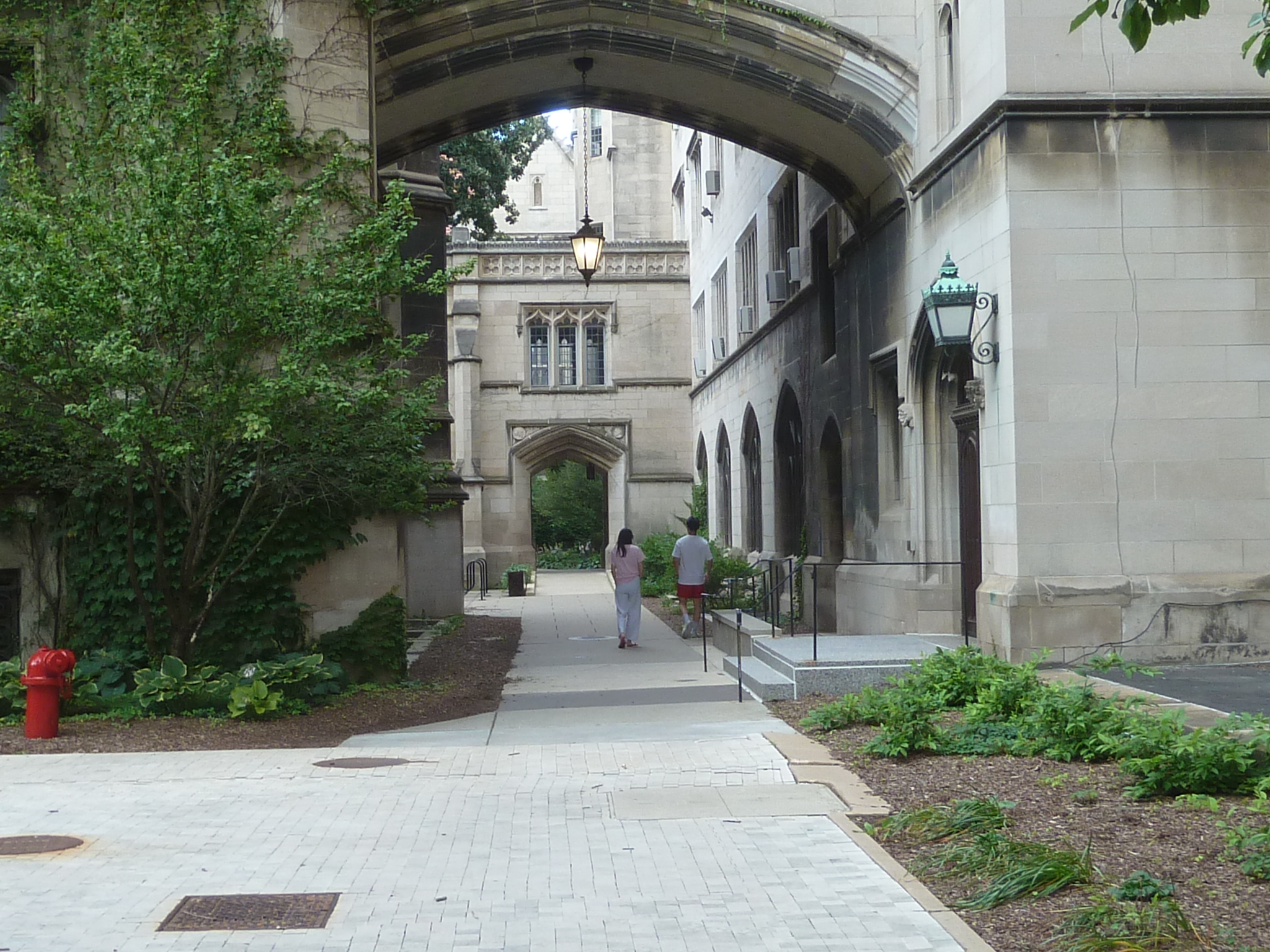 맞은편으로 Booth School of Business 그리고 Rockefeller Memorial Chapel
