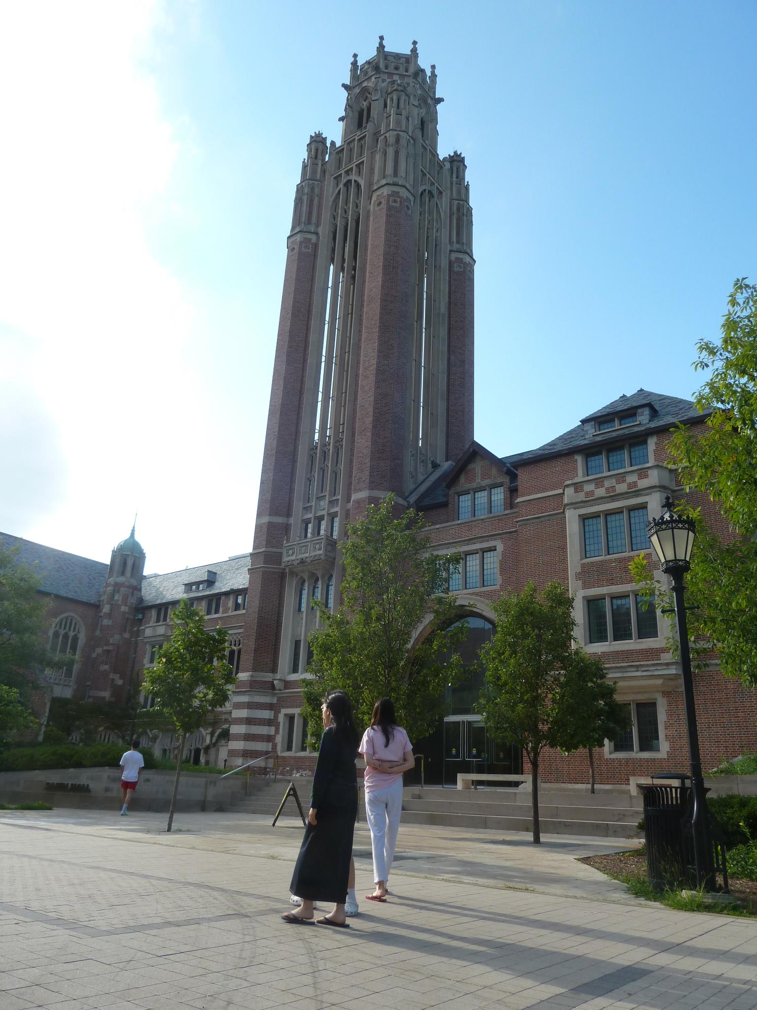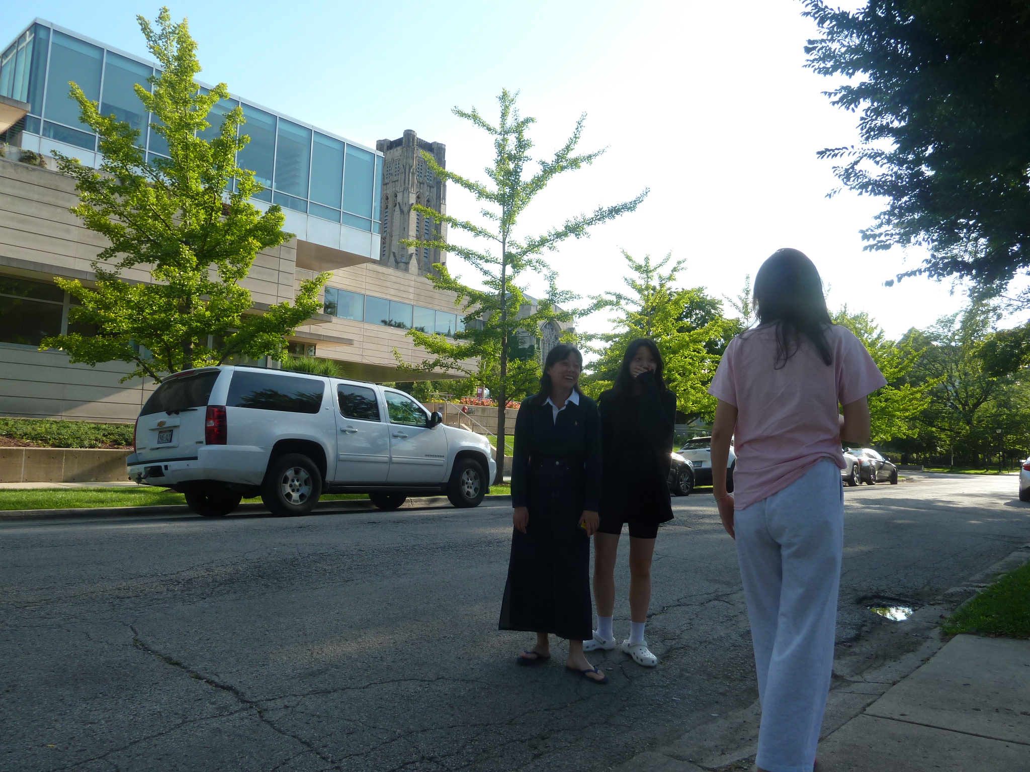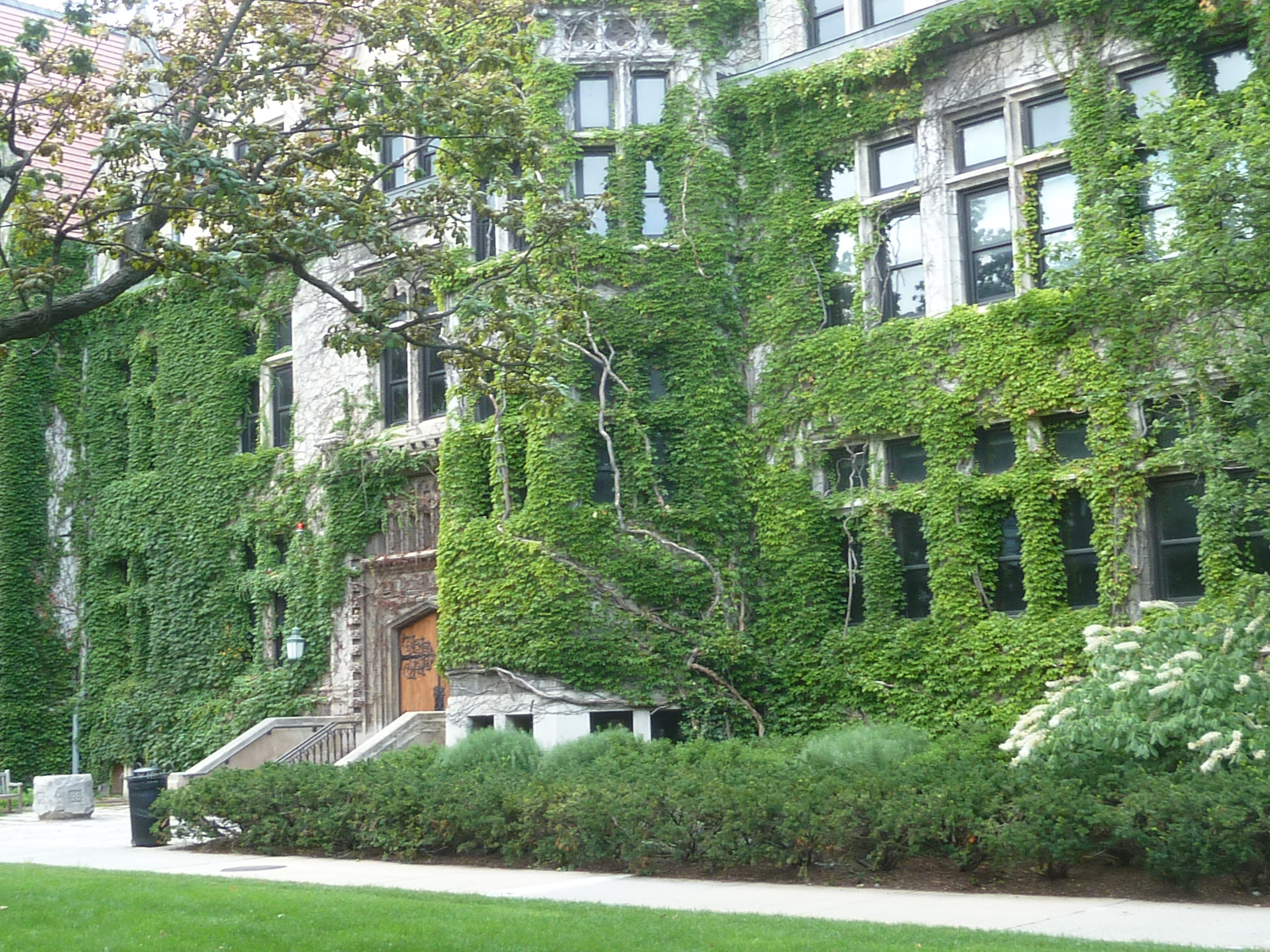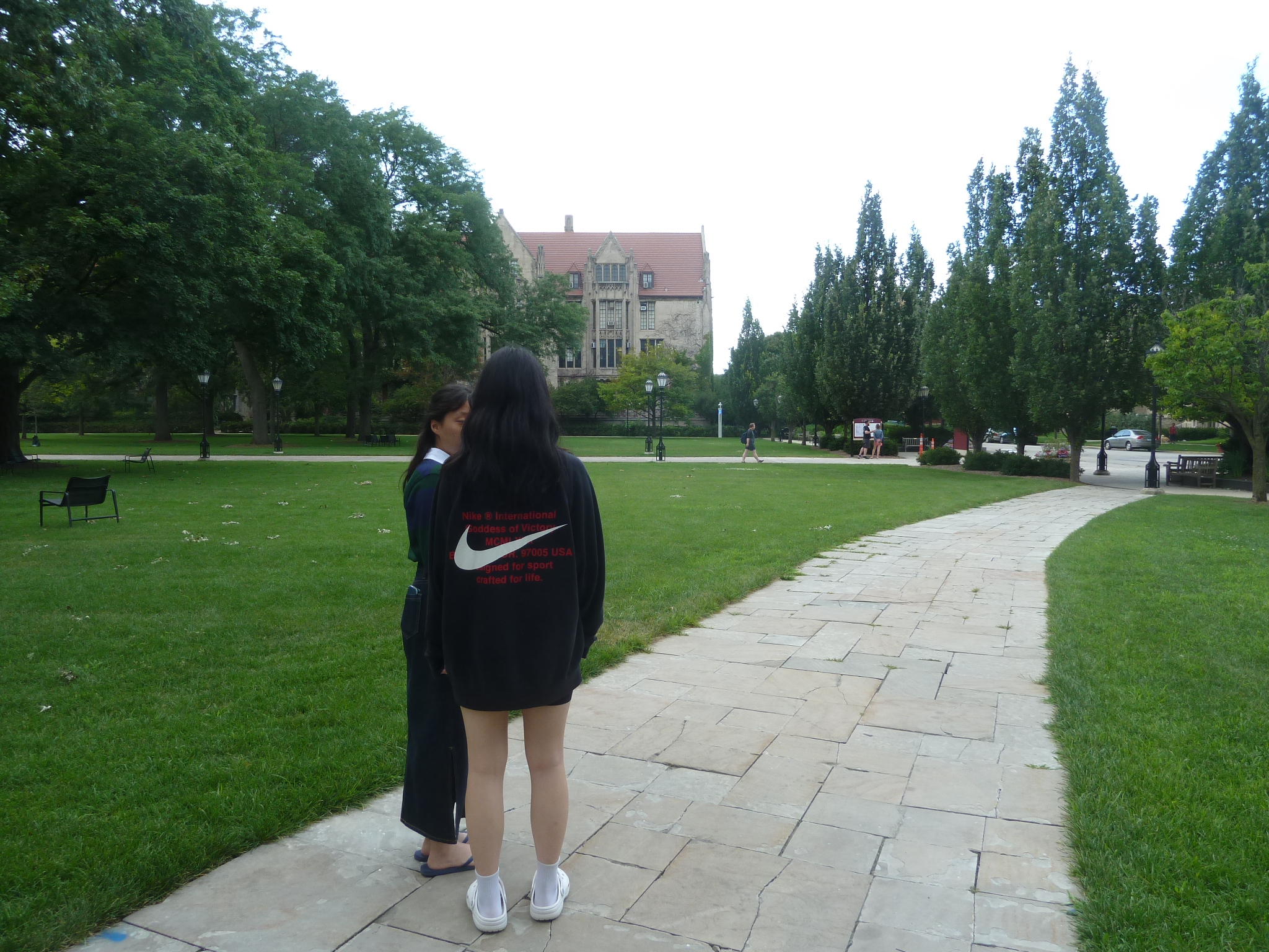 맞은편으로 Booth School of Business 그리고 Rockefeller Memorial Chapel