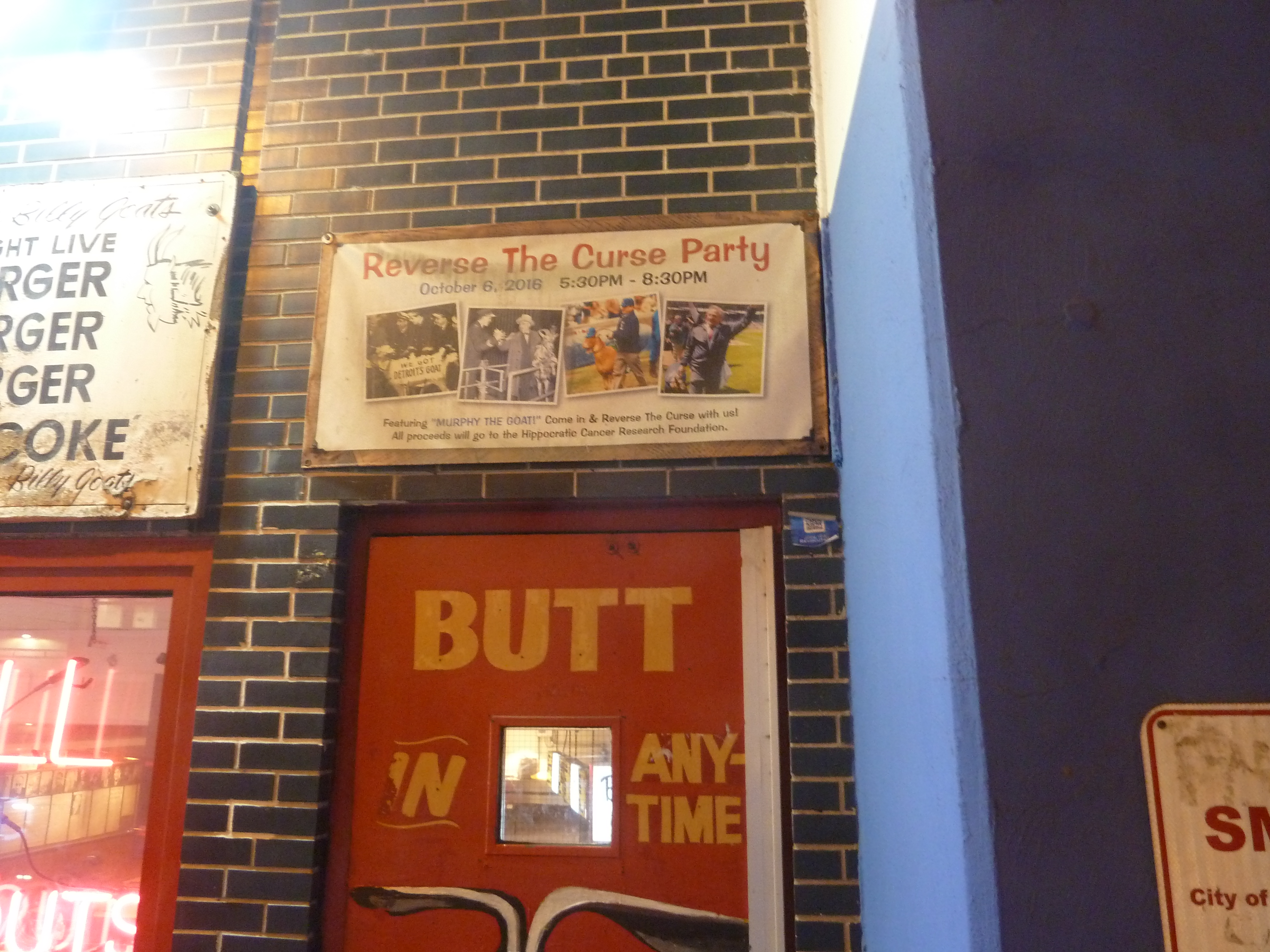 염소의 저주(The Curse of the Billy Goat) : Billy Goat 창업자인 빌리 시아니스(Billy Sianis)가 자신이 키우고 있던 염소 '머피'(Murphy)를 데리고 시카고컵스 월드시리즈(1945년) 경기장을 찾았으나 입장을 거부 당하자 "Them Cubs, they ain't gonna win no more" 라고 소리친 후로 월드시리즈 진출을 못했다는(1945~2016까지 71년동안)  믿거나 말거나 ^^