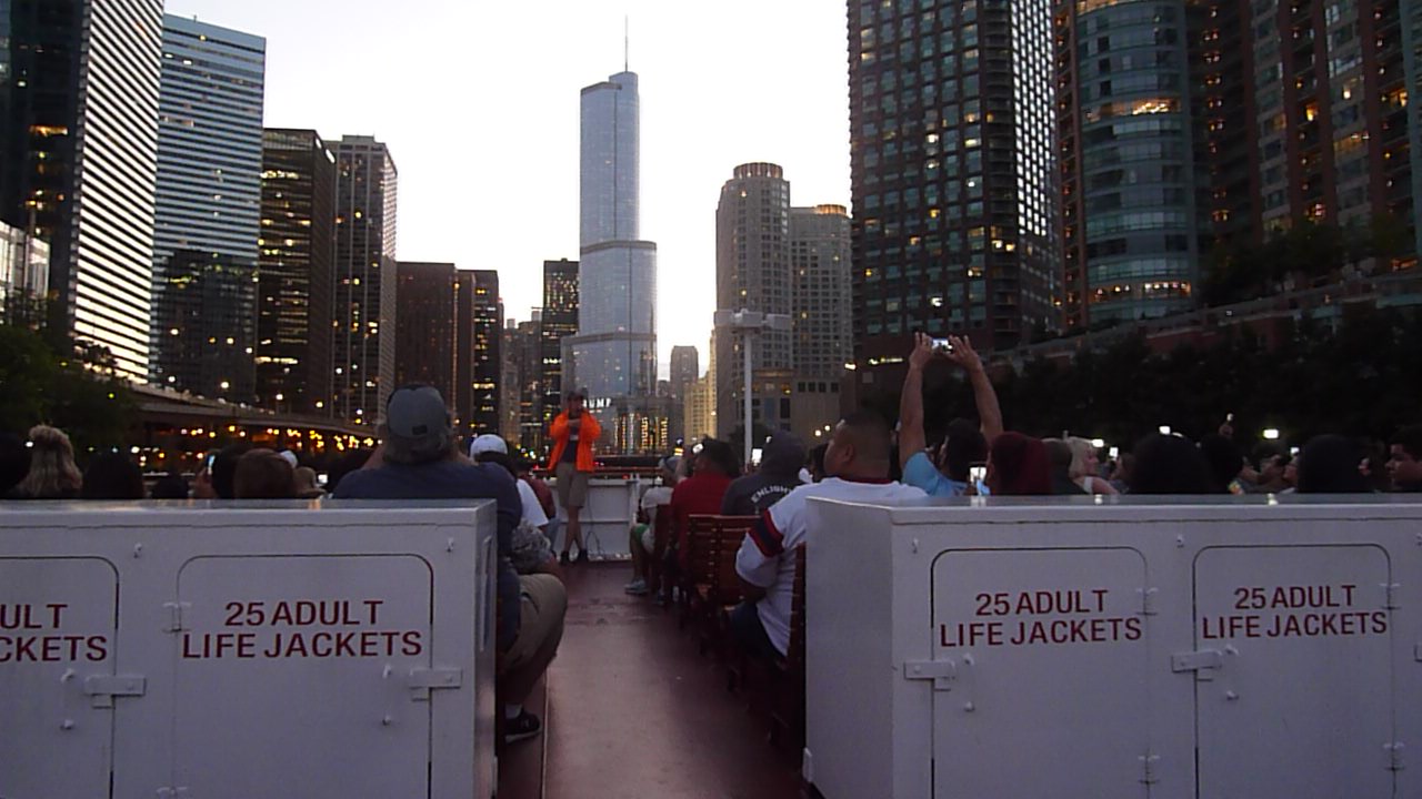 여름밤, 우린 시카고 강 보트 위에서 ~~  긴팔옷 ㅎㅎ
